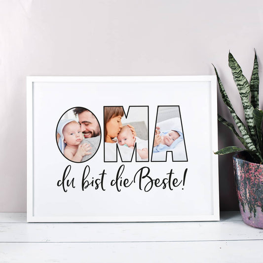 Fototasse - Oma du bist die Beste - mit 3 Bildern bedruckt