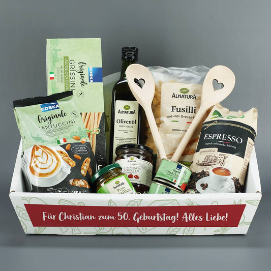 Gefüllter Präsentkorb - Alles Gute - mit italienischen Delikatessen