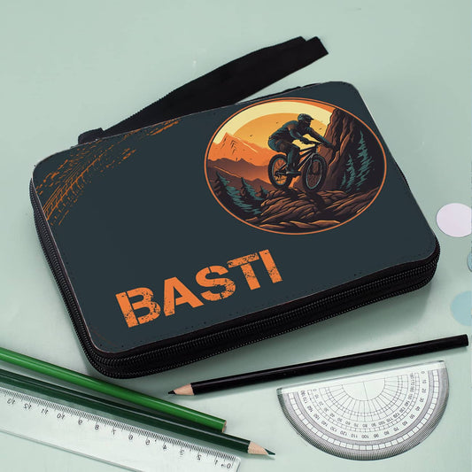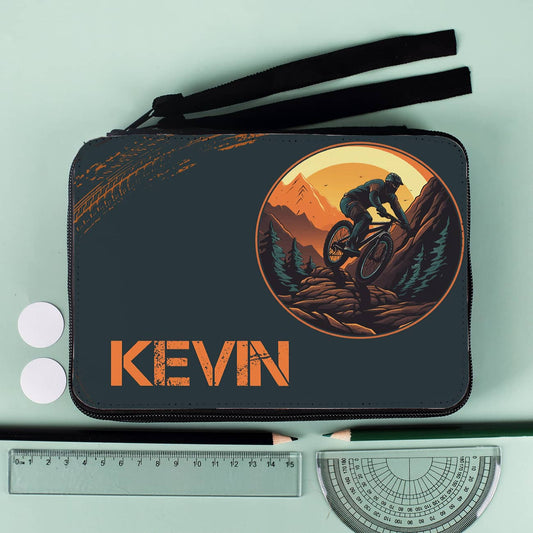 Federmappe mit Mountainbikemotiv und Namensaufdruck
