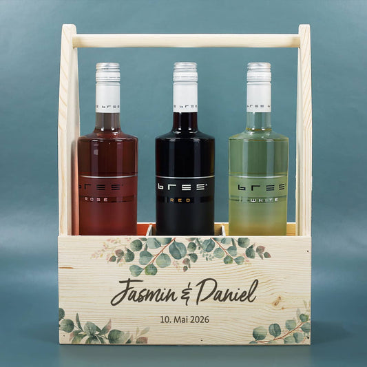 bedruckte Wein-Kiste aus Holz für 3 Flaschen zur Hochzeit