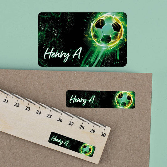 Fußball - Namensaufkleber für Schulmaterial, Aufkleber mit Name, wasserfest (100 Stück)