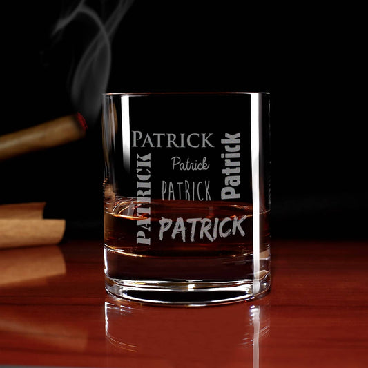 Whiskyglas mit Ihrem Namen in verschiedenen Schriftarten