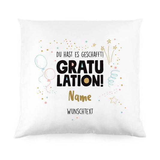 Gratulation, du hast es geschafft! Kissen mit Name und Wunschtext