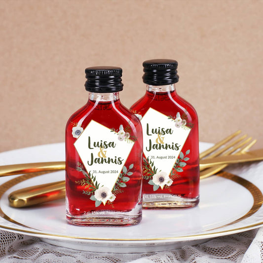Kleiner Schnaps zum Polterabend oder zur Hochzeit mit Namen und Datum bedruckt