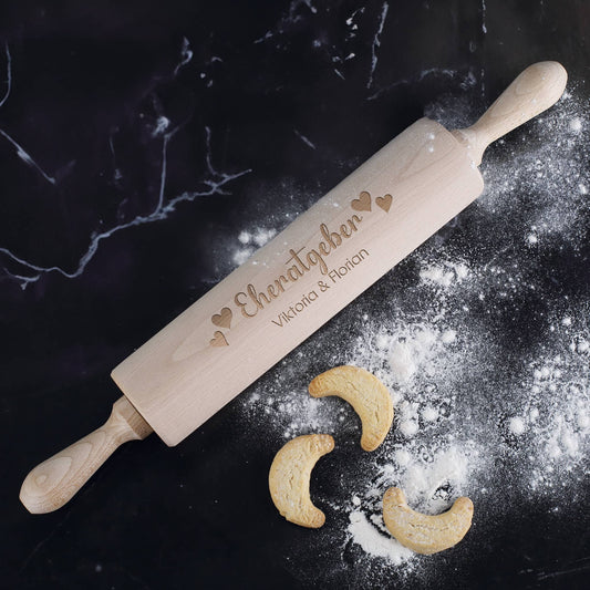 Eheratgeber - graviertes Nudelholz mit Namen des Paares personalisiert