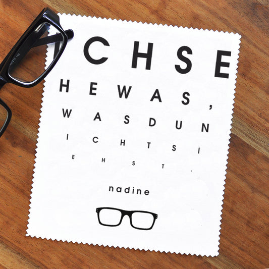 Brillenputztuch mit Sehtest und Wunschnamen bedruckt