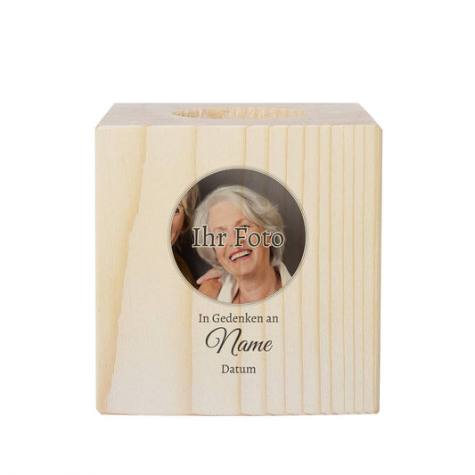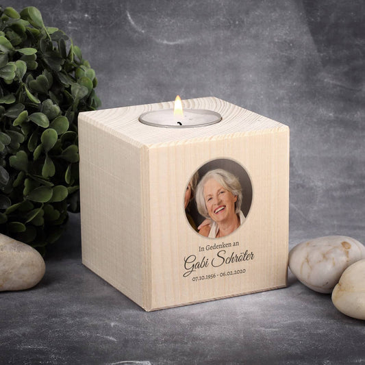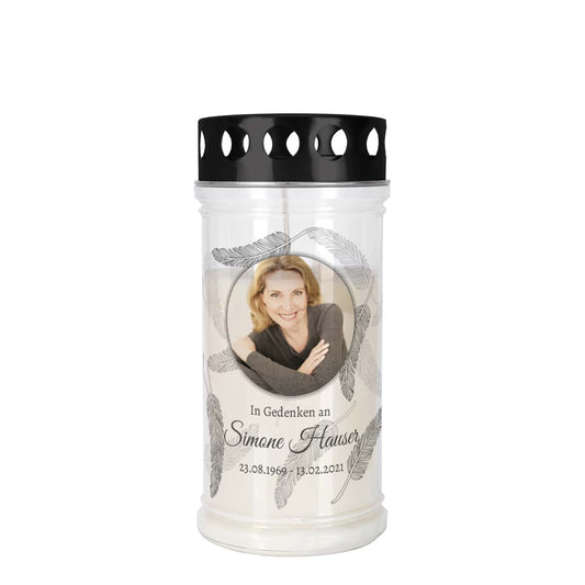 Personalisiertes Grablicht mit Foto, Name & Datum | 2 Größen