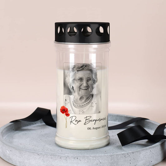 Grablicht - Mohnblume - mit Fotoaufdruck, Name und Datum