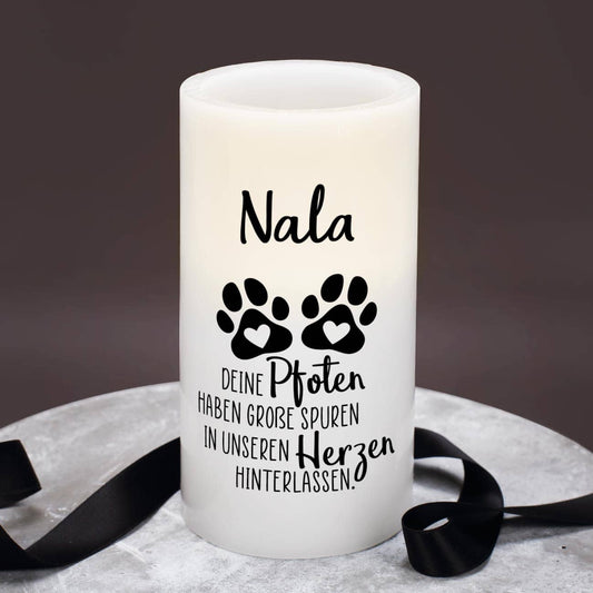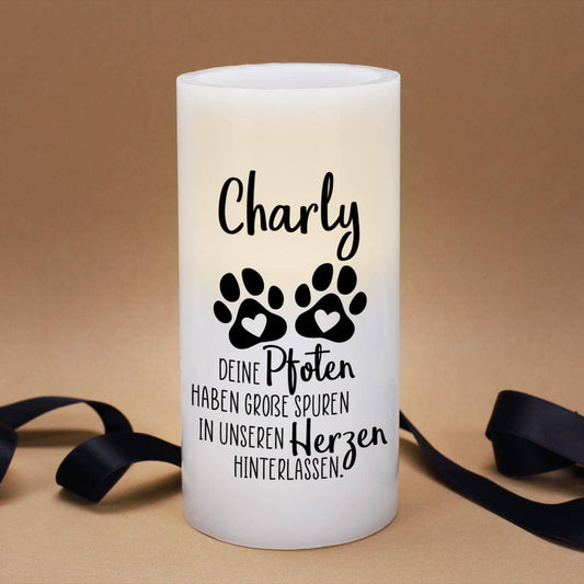 Trauerwindlicht für Tiere mit Pfoten, Spruch und Name