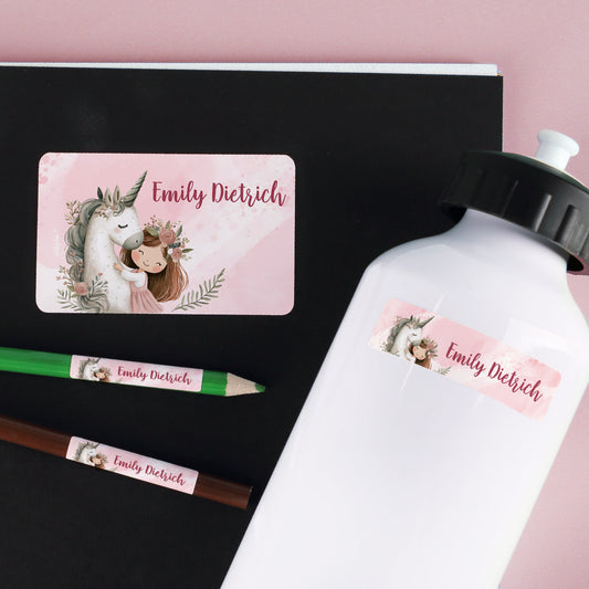 100-teiliges Schulaufkleber Set mit Einhornmotiv und Wunschname