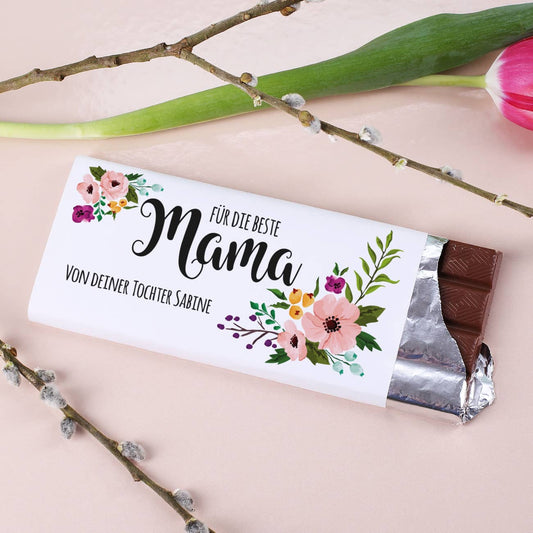 100g Schokolade zum Muttertag mit Blumenmotiv
