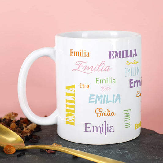 Tasse mit Namensaufdruck in Metallic Pink oder Gold