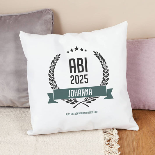 ABI & Schulabschluss - Kissen mit Faultier, Name und Wunschtext