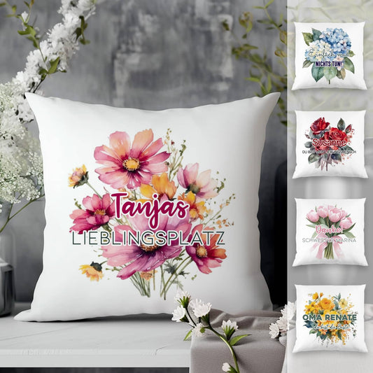 Blumenkissen mit Ihrem Text - verschiedene Motiv auswählbar