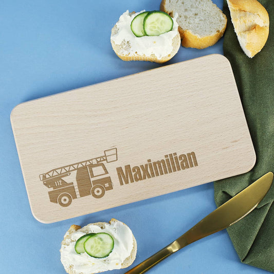 persönlich graviertes Holzbrett mit Messer für Feuerwehrmänner