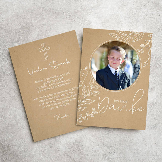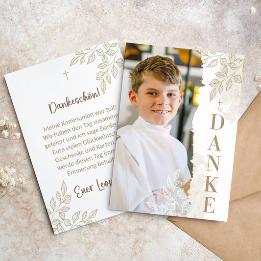 Dankeskarte zur Kommunion oder Konfirmation mit Blätterkreuz-Motiv