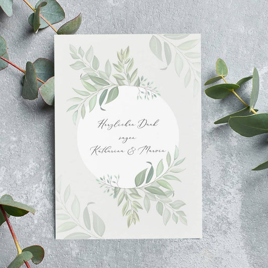 Dankeskarte - Eukalyptus - zur Taufe, Kommunion oder Konfirmation