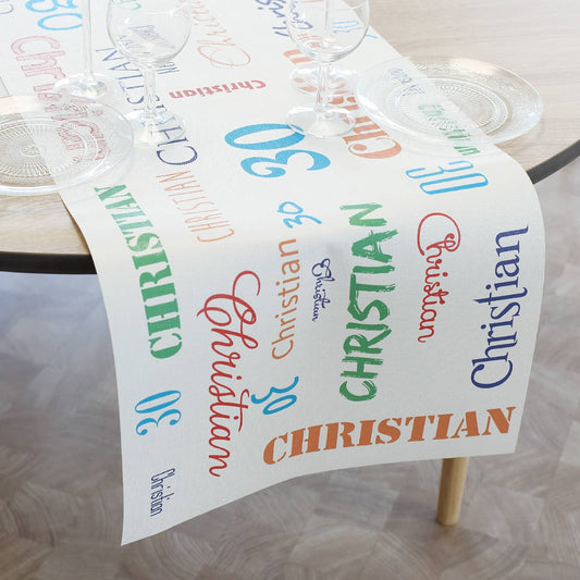 Geburtstagsparty Tischläufer mit Name und Alter - in zwei Längen