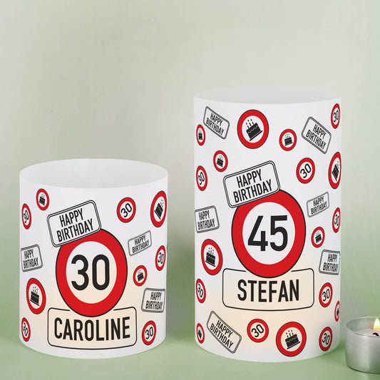 Lichthülle - Verkehrszeichen - mit Name und Alter als Geburtstagsdekoration
