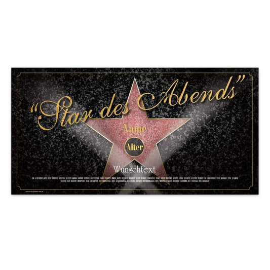 Bei einem 80. Geburtstag kann es nur einen „Star des Abends“ geben. Und das kann man ruhig, dick und fett unterstreichen. Mit einem XXL Banner, „Star des Abends“, Name und der Zahl 80. Mitten im Stern – ähnlich dem Hollywood Stern „Walk of Fame“. Wer seinen Namen auf einem derart schön gestalteten Banner sieht, der wird sich mit Sicherheit durch dieses Geschenk geehrt fühlen.