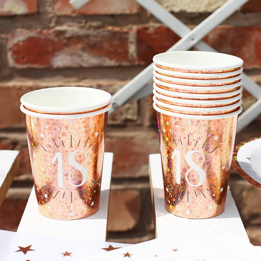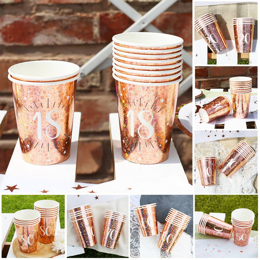 10 Pappbecher in rose mit Glitzereffekt vom 18.-80. Geburtstag