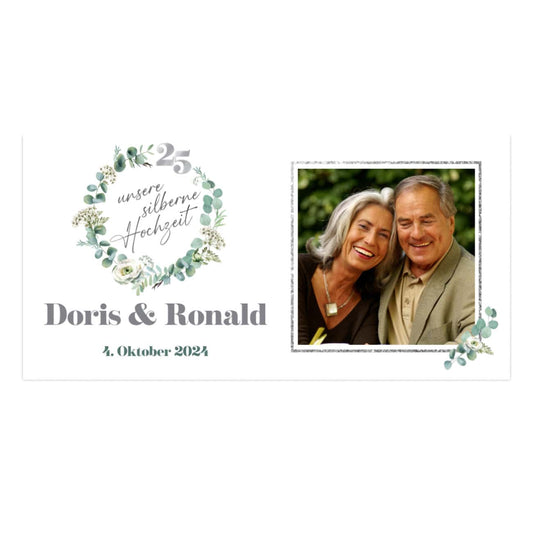 Ein Hochzeitsfoto kann sogar auf einem Banner während der Feier selbst präsentiert werden. Diese Hochzeitsbanner mit einem Foto dienen nicht nur als dekoratives Element an der Wand, sondern können auch als Hintergrund für Fotos genutzt werden. Besonders beliebt sind die Ausschneide-Banner, die mittlerweile zu einer gängigen Tradition auf Hochzeiten geworden sind.
