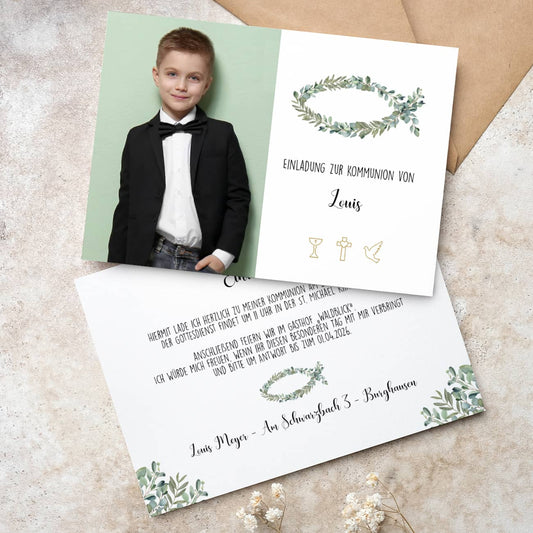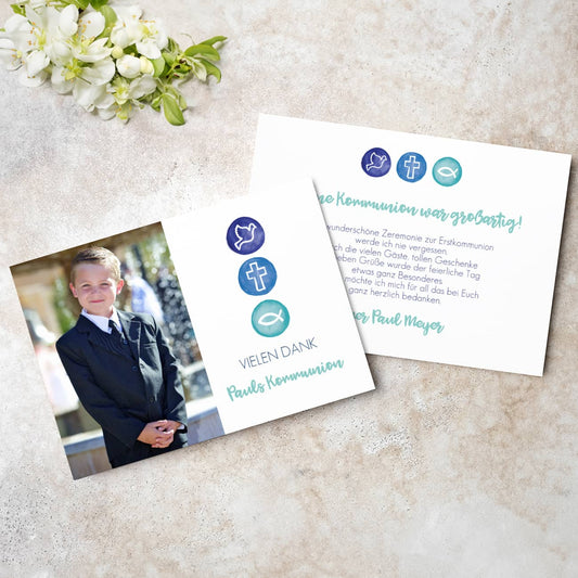 Dankeskarte mit vielen Fotos zur Taufe, Kommunion oder Konfirmation