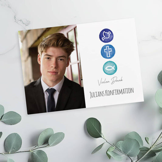 Modernes Banner zur Jugendweihe mit Foto und Name in verschiedenen Farben
