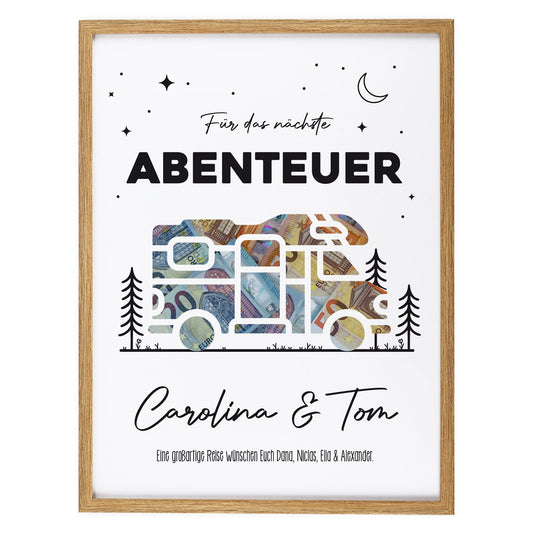 Geldgeschenk Bilderrahmen mit personalisiertem Wunschtext für Abenteuer | Wohnmobil Motiv