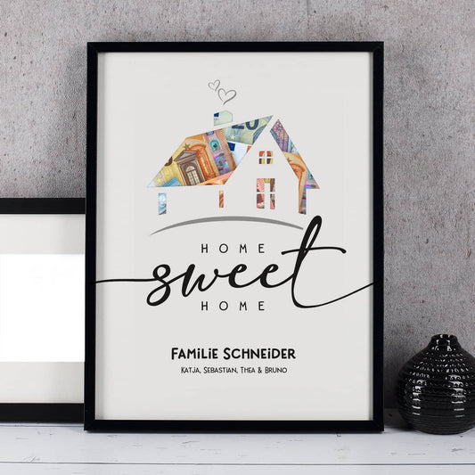 Geldgeschenk im Bilderrahmen zum Richtfest, Umzug oder Hausbau, 30x40cm