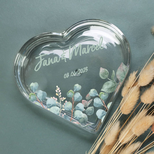Schmuckdose in Herzform mit Eukalyptusmotiv