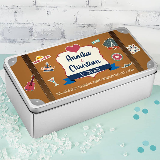 Metall Spardose zur Hochzeit mit Namen und Datum
