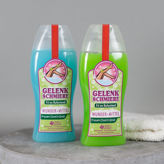 Lustiges Duschgel für Frauen 'Gelenkschmiere' | 2 Sorten