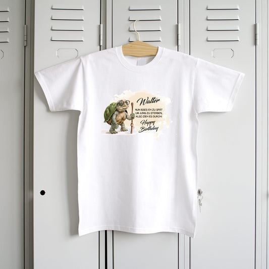 Lustiges T-Shirt zum Geburtstag personalisiert mit Name | 'Zu alt um jung zu sterben'