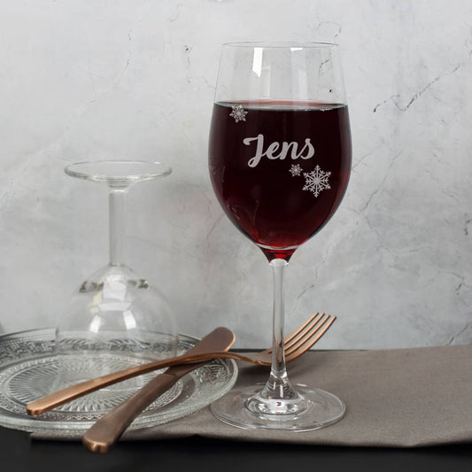 Glühwein mit Schneeflocken Gravur und Ihrem Wunschnamen