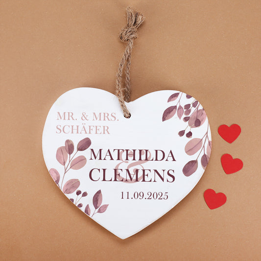 Holzherz mit Wunschnamen und Datum – Romantisches Geschenk mit Rosen-Motiv