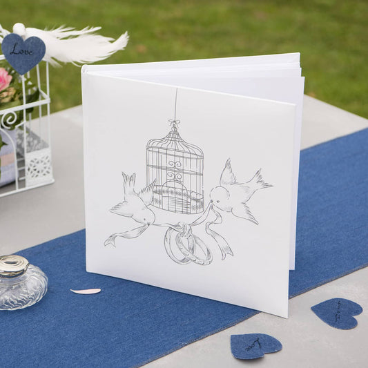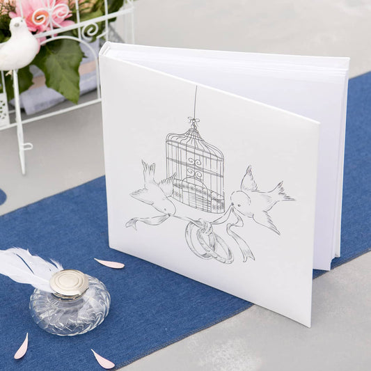 Gästebuch zur Hochzeit in Weiß mit Taubenmotiv