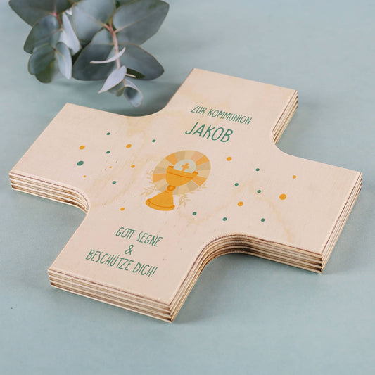 Holzkreuz zur Kommunion mit Wunschname & Wunschtext