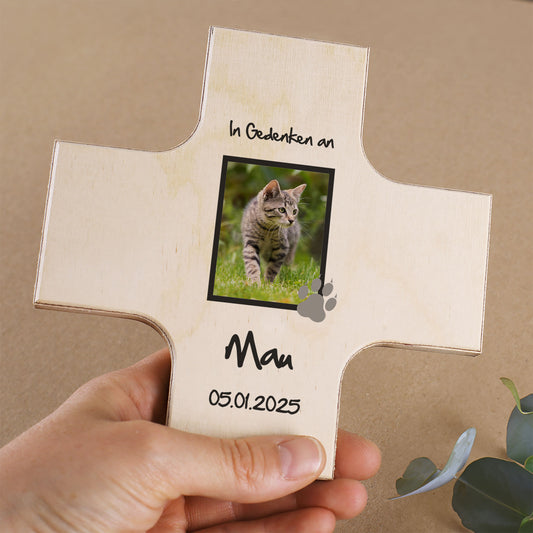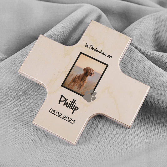 Personalisierbares Holzkreuz Trauer mit Pfotenmotiv – Erinnerung an dein Haustier