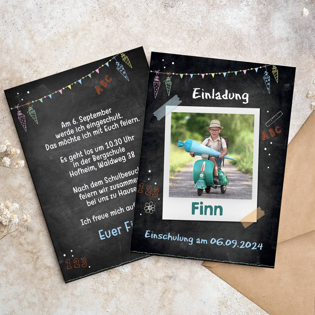 Die Einschulung ist ein bedeutender Schritt im Leben eines Kindes, der oft mit einer großen Feier begleitet wird. Eine personalisierte Einschulungskarte mit Namen, bunten Motiven und einem motivierenden Spruch ist eine schöne Möglichkeit, dem Schulkind Mut zu machen und ihm viel Erfolg für diesen neuen Lebensabschnitt zu wünschen.