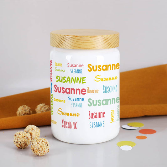 Vorratsdose mit Ihrem Wunschnamen in verschiedenen Schriftarten