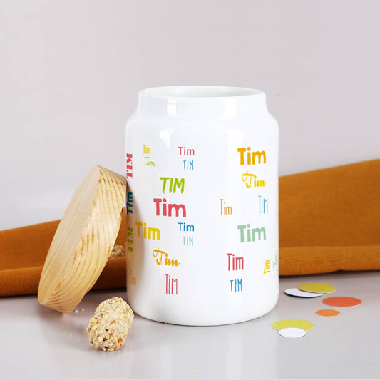 Keramikdosen, personalisiert für Kekse & Leckereien. Zur Aufbewahrung sind ein dekoratives Geschenk, das mit allem befüllt werden kann, das Sie verschenken möchten! Nutzen Sie unsere Keramikdosen in Weiß mit dem schönen natürlichen Holzdeckel, um ein DIY-Geschenk für jeden erdenklichen Anlass zu kreieren.