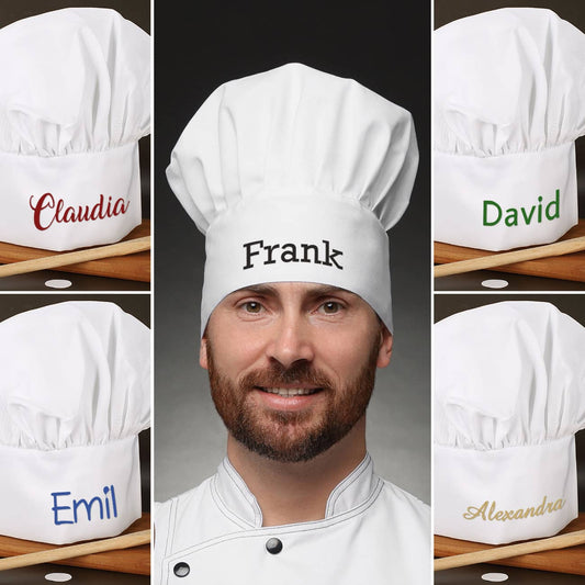 Persönliche Kochmütze mit Ihrem Wunschnamen in verschiedenen Farben und Schriftarten