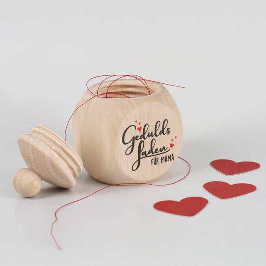 Kleine Holzdose mit Geduldsfaden und Wunschtext