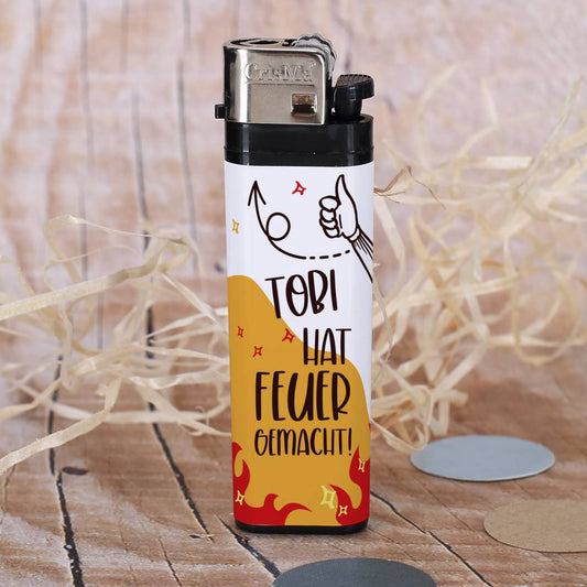Ich habe Feuer gemacht! - Feuerzeug mit Namensaufkleber