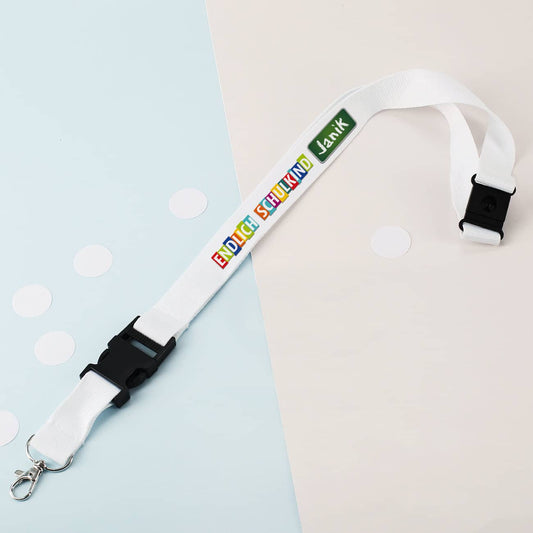 Egal, ob für den Büroalltag, den Sportverein oder einfach nur für unterwegs – unsere Schlüsselbänder sind vielseitig einsetzbar und bieten für jeden Geschmack das passende Design. Ob mit sportlichem Fußball-Motiv, schlichter Schriftzug mit Name oder ein niedliches Einhorn-Motiv - die Auswahl ermöglicht es für jedes Kind was Originelles auszusuchen.