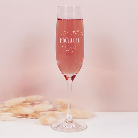 Sektglas mit Name und Herz aus Punkten