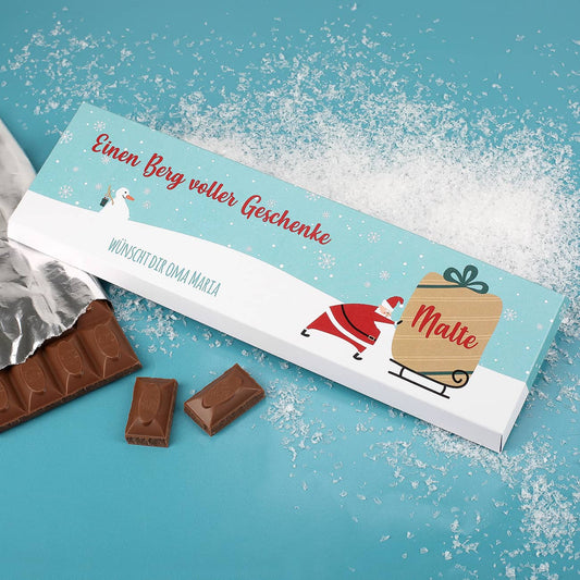 Es kann viele Gründe geben, wieso man süße Weihnachtsgrüße an eine Person senden oder Sie ihr persönlich überreichen möchte. Zu Schokolade und Pralinen kann niemand "Nein" sagen, sie sind interessanter als die klassische Grußkarte zu Weihnachten oder zum Nikolaus und sie eignen sich wunderbar für Geldgeschenke. Deshalb bieten wir Ihnen hier eine große Auswahl an Schokoladentafeln mit Personalisierung zum online kaufen und bestellen, die sowohl für den Gaumen und auch die Augen ein großer Genuss sind und einem schnell weihnachtliche Stimmung bringen. Perfekt für jeden, der einzigartige Geschenke und gleichzeitig ein Schnäppchen machen will!