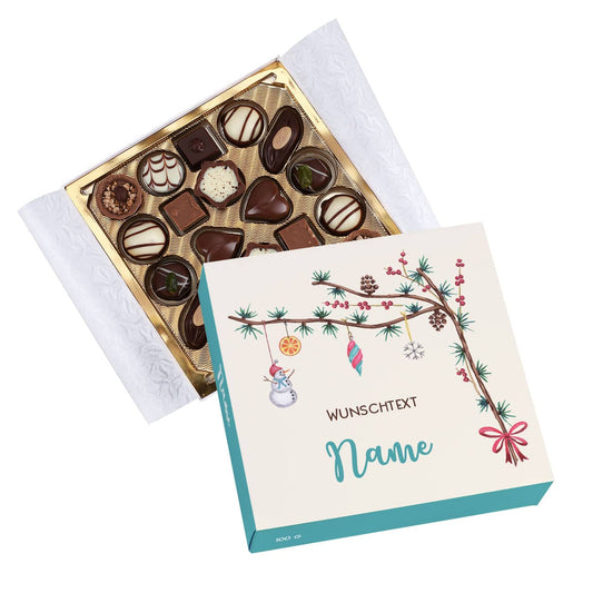 300g Schokolade mit Weihnachtsmotiv und Wunschtext