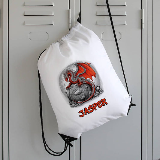 Roter Kinderrucksack mit niedlichem Drachen und Ihrem Wunschnamen